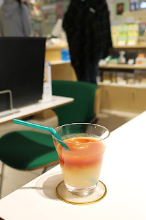 予約したサービスということで、寒天ドリンク(トマトとりんご味)頂いてしました。