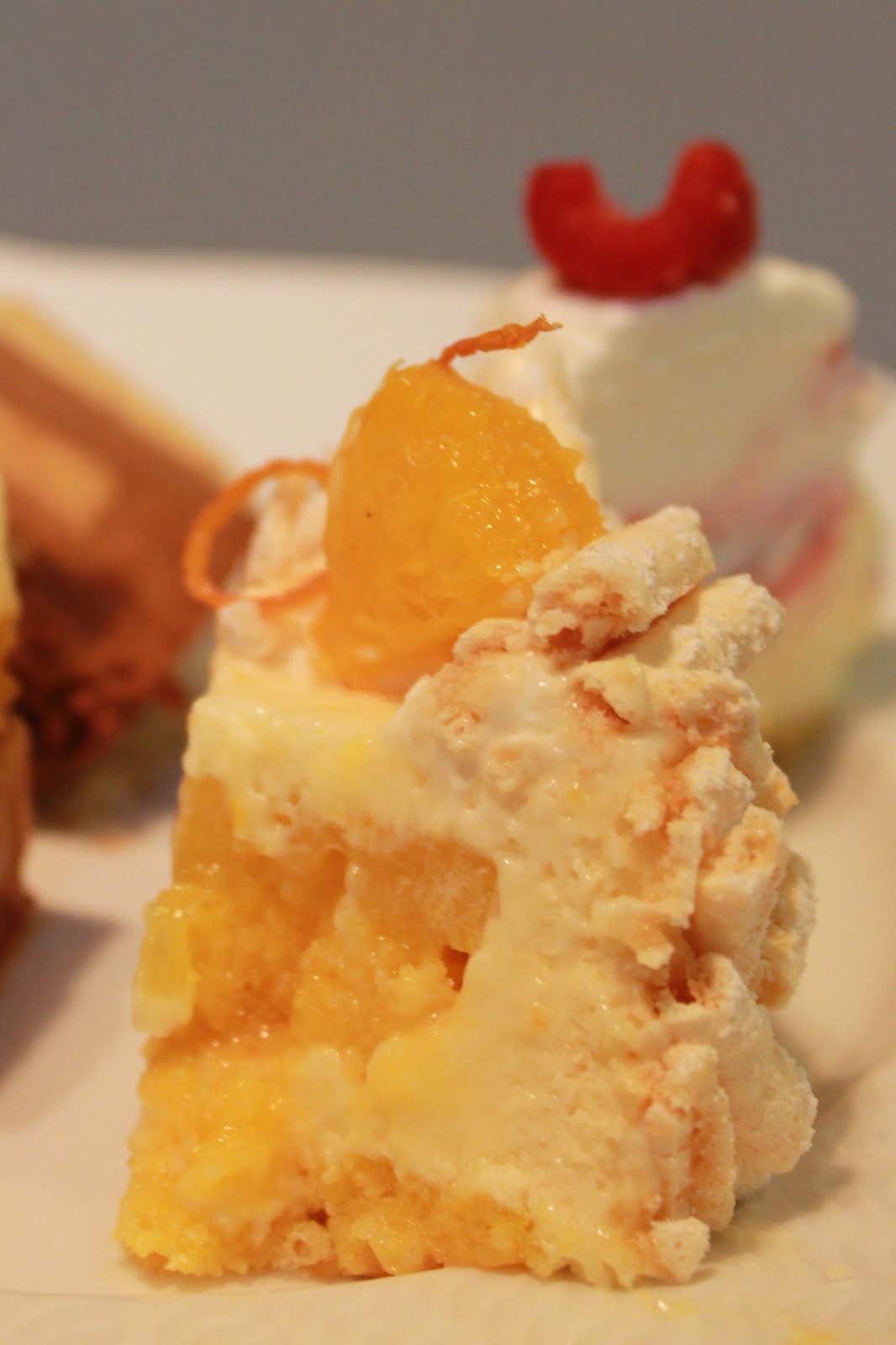 ココナッツメレンゲ、マンゴーとチョコのムースのハーモニー。