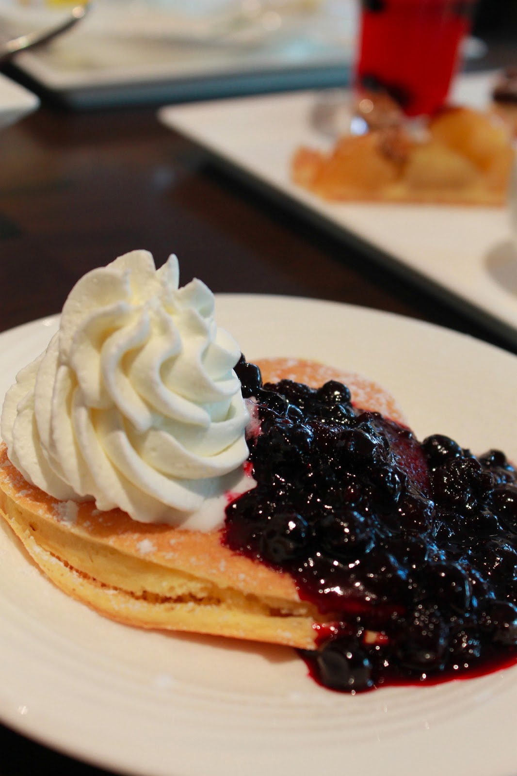 ベリーのソースが甘酸っぱく、ホイップクリームは固めでしっかりしてる。パンケーキは思ったよりふわふわというより固め(作り置きだったから?)で好み。