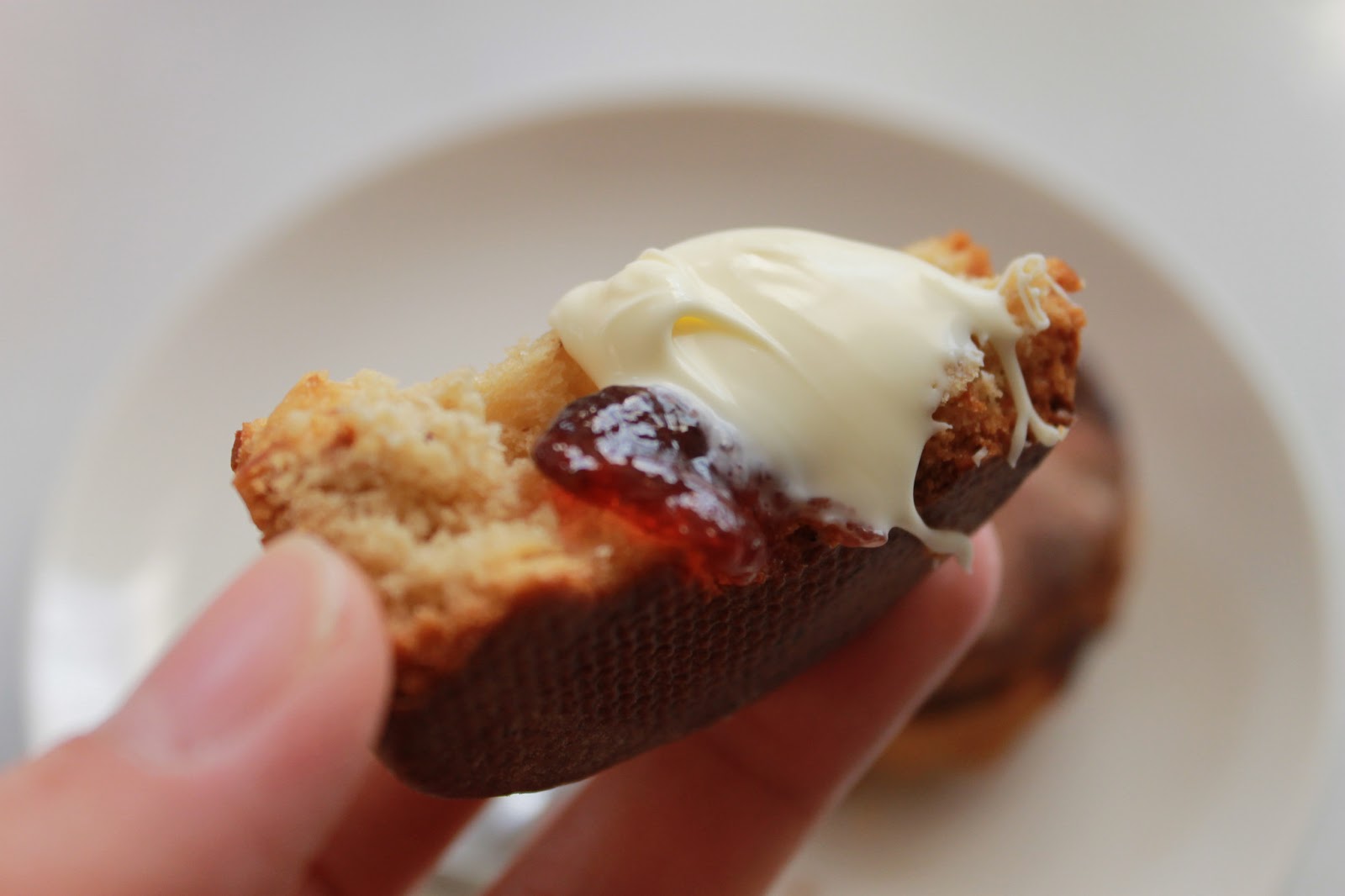 外側ザク、そこまでパサパサしておらず、お好みでそのまま食べてもOKですが、クロテッドクリームやジャムを付けることで生きてくるタイプだと思います。テイクアウト可能。