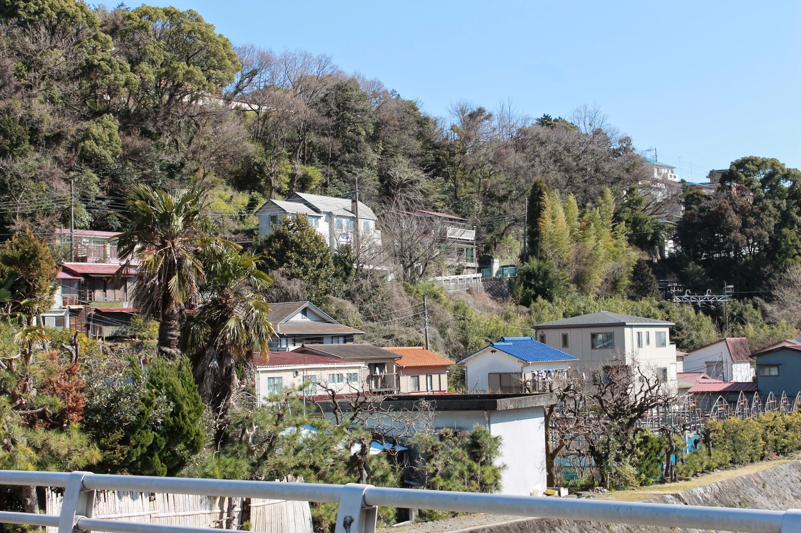 途中山の斜面に目を移すと、もしかして遠目に見えるあれがそうかな、と思える建物がありました。