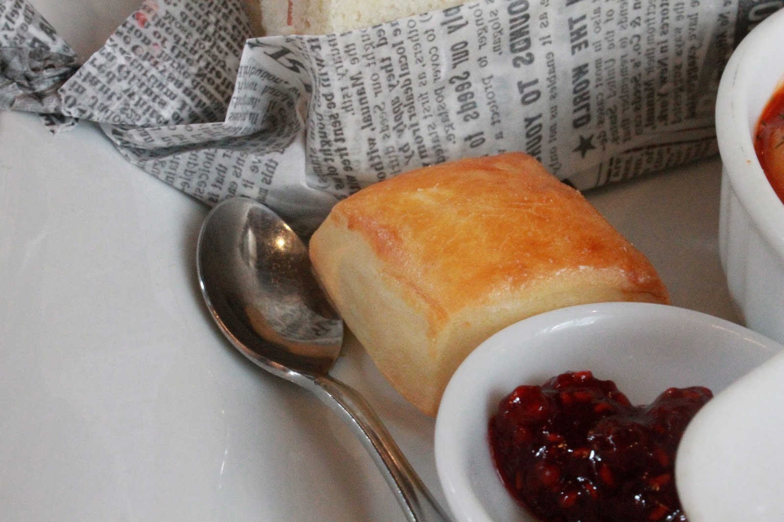 残念ながら冷めると食感がグニグニする系のスコーンでした。言わんとするところがわかりますか?ゴムを噛んだ感じですね。食べた瞬間、これトースターで温めるともっと美味しいはず。。。とちょっとがっかり。ちなみに付け合わせはジャムのみ、クロテッドクリームはなし。