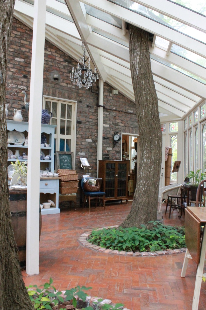 コンサバトリーの屋根を大きく貫く木は、もともと生えていたものをそのまま残したそうです。素敵ですね。